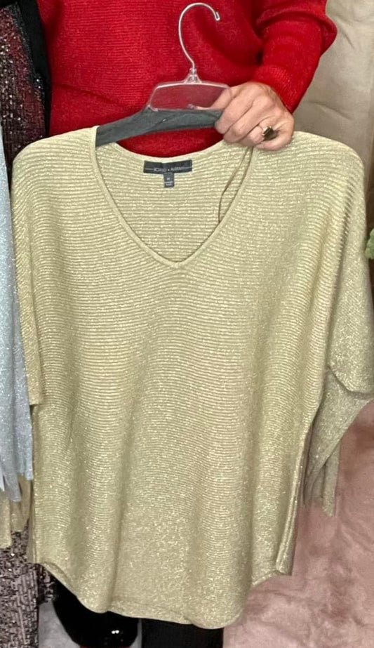 Lurex Ribbed V-Neck Dolman Sleeve Sweater