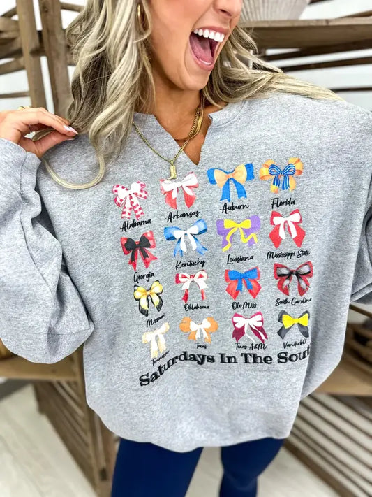 Saturdays In The South Sport Gray Split Neck Graphic Sweatshirt