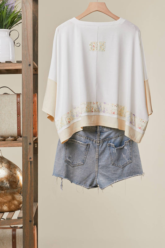 LACE EMBROIDERED SHORT SLEEVES ROUND NECK TOP