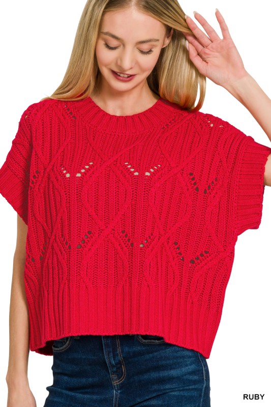 Cozy meets cute in this Cable Knit Short Sleeve Sweater! Perfect for layering or wearing solo, its charming knit pattern adds texture and fun to any outfit. Lightweight yet warm, it’s your go-to for those in-between days when you want comfort without the bulk. Get ready to turn heads and stay snug with a playful twist!