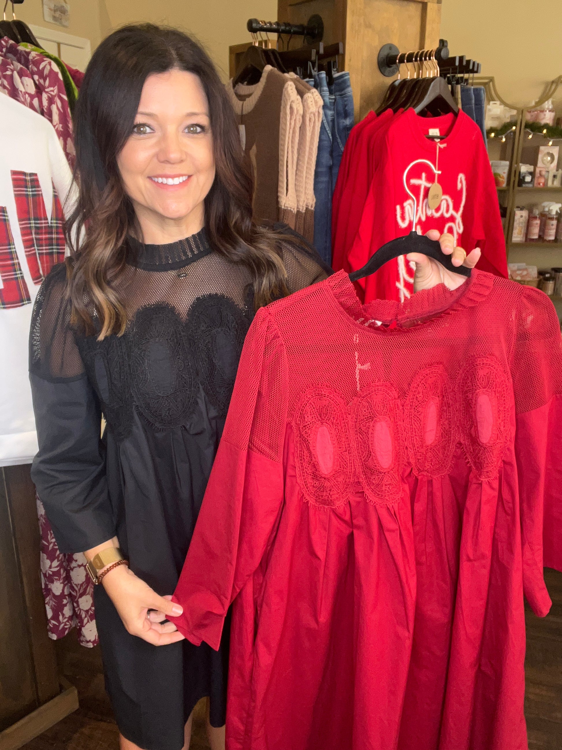 Embrace effortless style with this Crochet Lace Trim Accent Babydoll Dress. Featuring 3/4 sleeves and delicate mesh contrast, it adds a touch of intrigue while remaining breathable. The crochet lace trim enhances its feminine charm, and practical side pockets offer convenience without sacrificing elegance. A button closure on the back ensures a flattering fit, making this dress perfect for day-to-night wear.