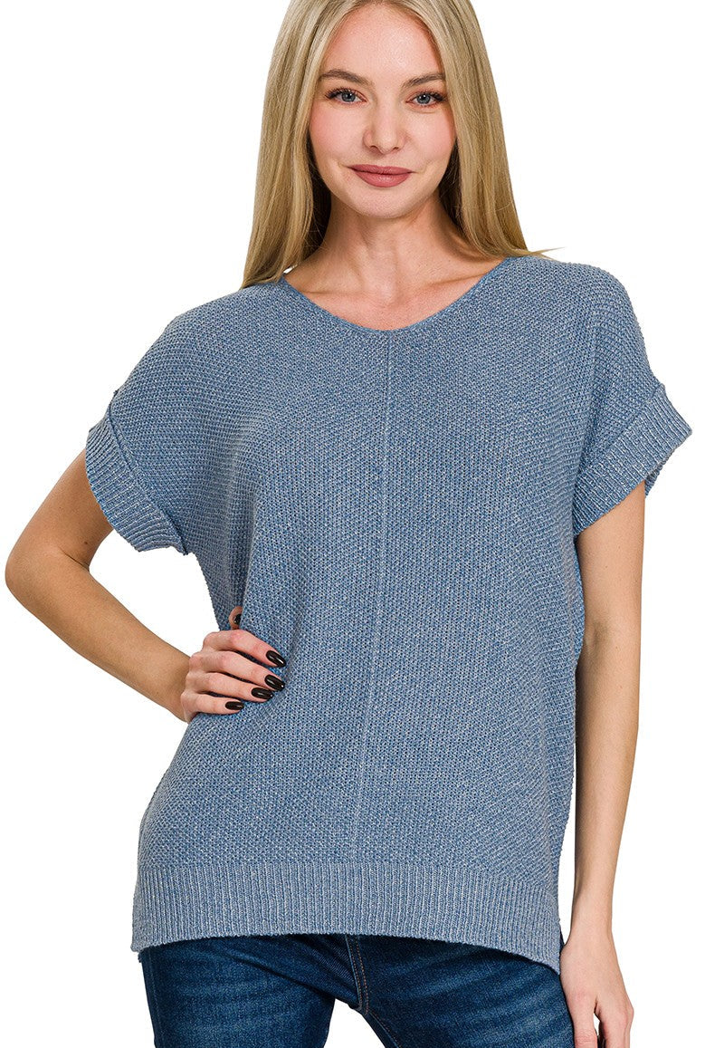 Elevate your casual wardrobe with this Everyday Simple Sweater. Featuring trendy side slits and a statement center seam, this short sleeve sweater is perfect for everyday wear. Stay comfy and stylish with this must-have piece!