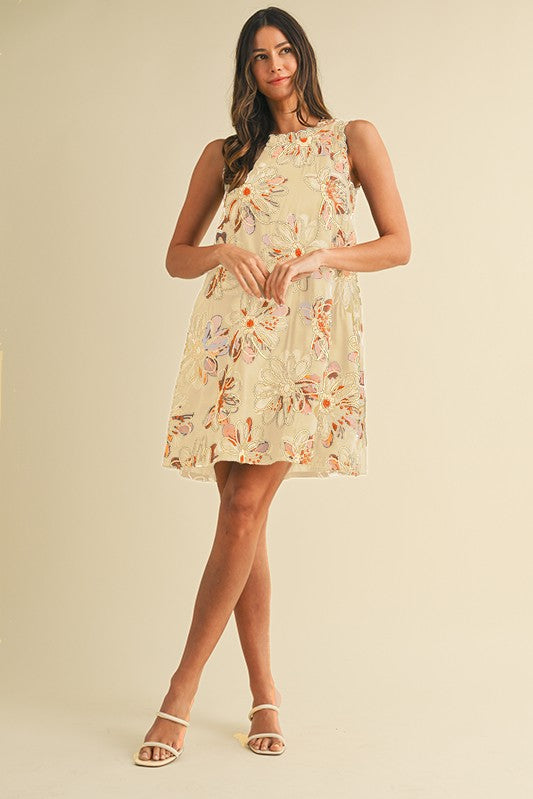 Step into sunshine with this playful Floral Embroidery Mini Dress. Featuring delicate floral embroidery on a flattering sleeveless A-line silhouette, it offers a breezy, comfortable fit perfect for warm days. The round neckline adds a sweet touch, while the mini length keeps the look fun and flirty. Ideal for garden parties or casual outings, this dress brings a fresh burst of charm to your wardrobe.