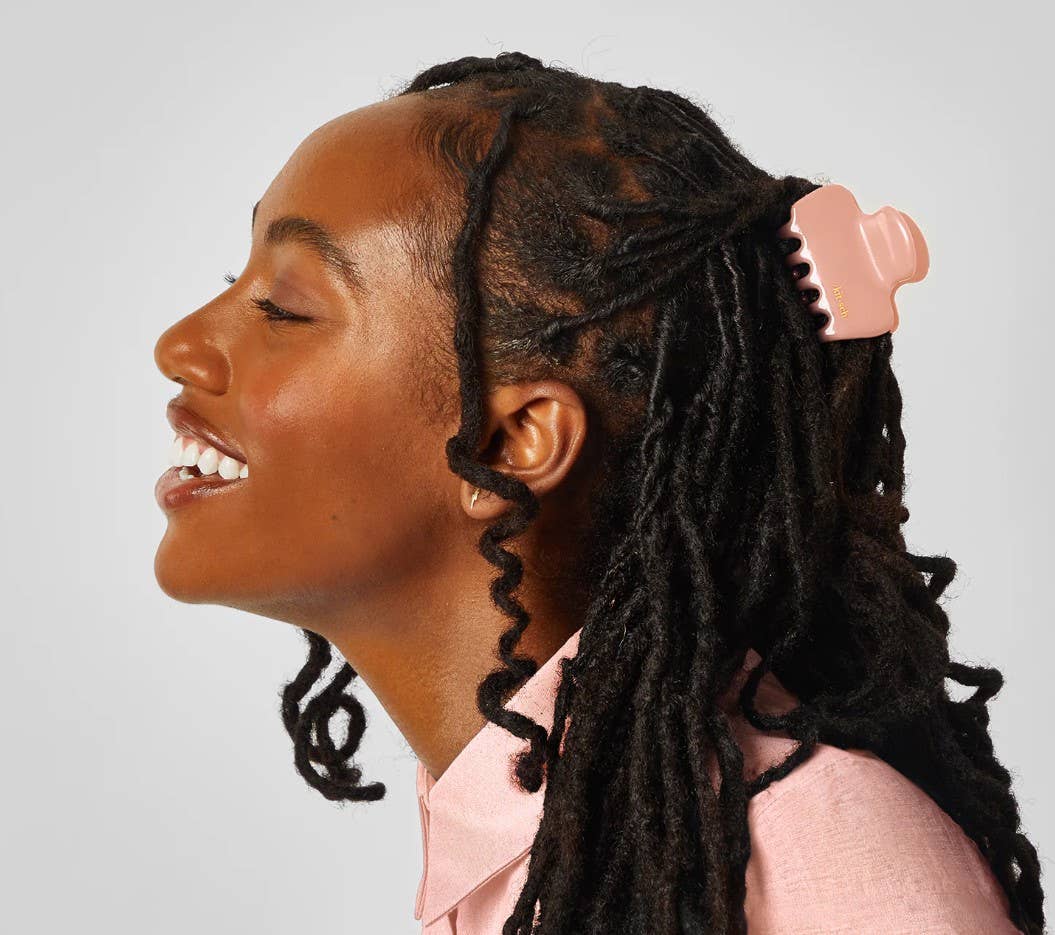 Transform your hair routine with our eco-friendly Holiday Recycled Plastic Claw Clip, inspired by the magic of Holiday Wonderland! Perfect for gifting or treating yourself, this clip effortlessly twists and secures your hair into stunning half-up or full updo styles. Its large arch shape can comfortably hold all hair lengths and textures, from thick to curly hair. The unique cloud design adds a dreamy touch to any hairstyle. Made from recycled plastic, this clip is both stylish and sustainable for an everyday look.
