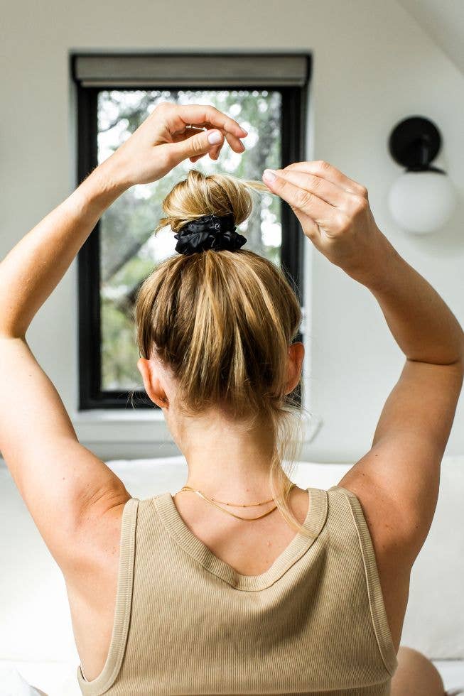 Your TELETIES just got an upgrade! These TELETIES Silk Scrunchies are made of 100% natural silk, making them super soft and gentle for your hair. It also prevents breakage and damage while you snooze. With our innovative TELETIES spiral coil inside, you get the same features of our game-changing hair ties, now covered in silk! Get ready to wake up with hip, happy and healthy hair!