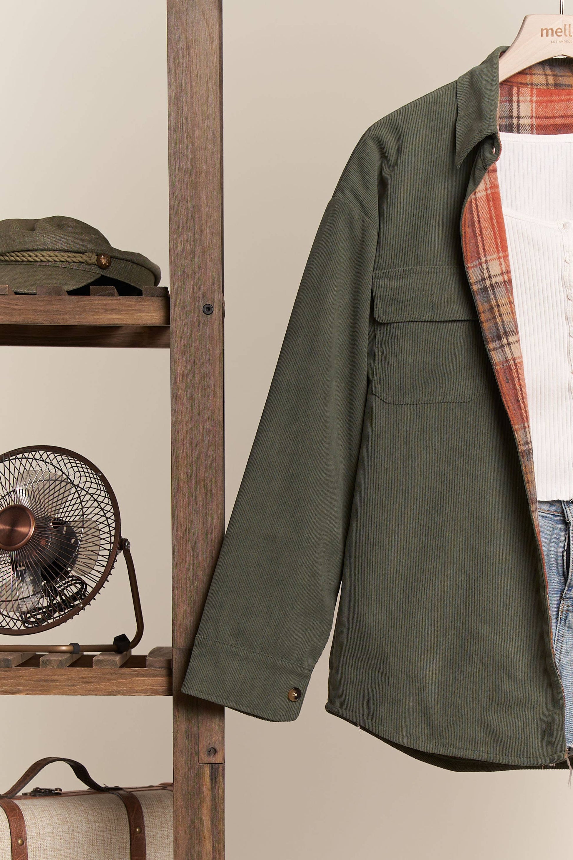 Reversible Corduroy and Plaid Button Down Shirt Jacket