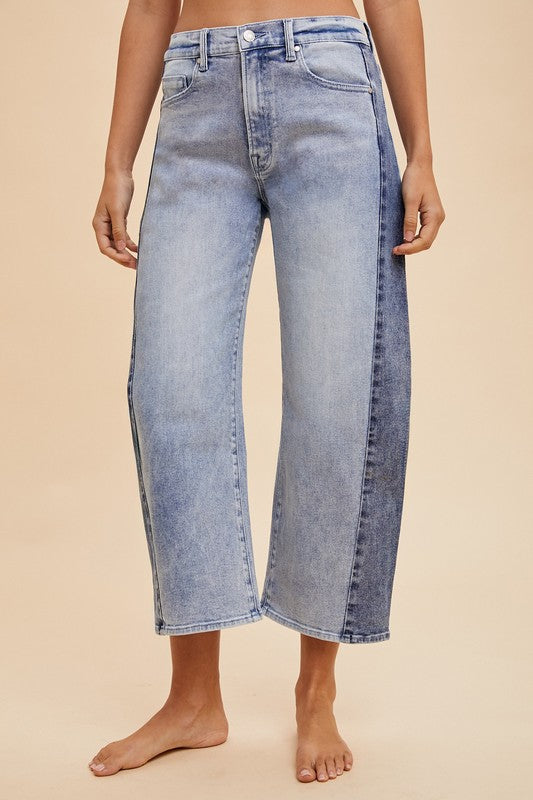 Two Tone Side Panel Barrel Jeans