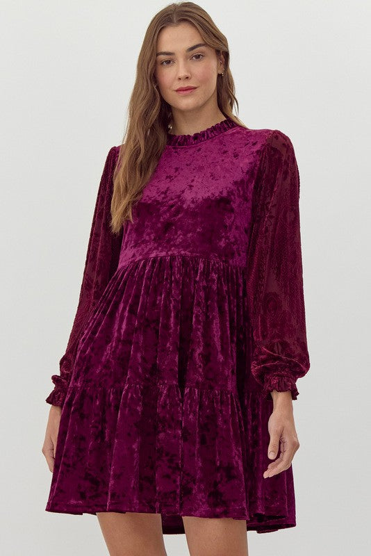 Feel like a bohemian goddess in the Valerie Velvet Dress. This babydoll dress features a frilled neck and back key hole, with long poet sleeves and a tiered layer design. Crafted from lightweight velvet that is non-sheer, this dress will make you stand out in any occasion.